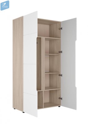• Шкаф имеет перегородку, комплектуется штангой овальной металлической и полками