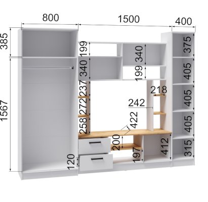 Ниша под ТВ (ШхВхГ): 1000х800х422 мм