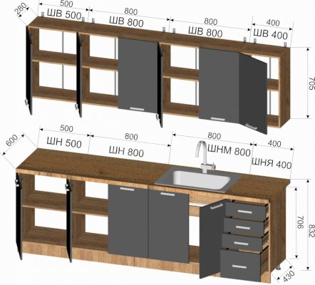 Шкаф нижний (с ящиками): 400х830х450 мм