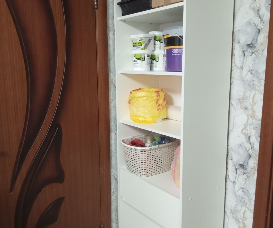 лаконичный, белый, с ящиками, высокий и глубокий, удобен для хранения и расстановки книг плюс хранение других вещей в комнате. прост в сборке - собирается за час максимум