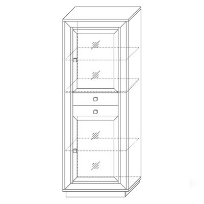 Данный модуль имеет очень удобную и вместительную конструкцию для открытого хранения за прозрачным стеклом всевозможных красивых вещей. Благодаря наличию двух отделений со стеклодверью здесь вы сможете поместить большое количество посуды, фужеров, статуэток, ваз и обустроить бар. Каждая ниша за стеклянной дверкой обустроена стеклополкой из надежного стекла 6 мм. Уравновешивают и визуально делят витрину на 2 отделения 2 выдвижных ящика по центру, здесь можно закрыто хранить различные мелочи или аксессуары.