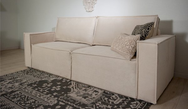 Брутальный диван с минималистическим дизайном и комфортной посадкой украсит современный интерьер, отлично подойдет для зонирования комнаты. Прямые линии силуэта подчеркиваются двойным декоративным кантом. Посадочное место образовано из двух частей, которые раскладываются независимо друг от друга и при необходимости прямую конфигурацию дивана можно менять на угловую. Инновационная система раскладки состоит из трех роликов на металлических направляющих, легко превращает диван в спальное место, исключает перекосы и деформацию короба. Металл в направляющих повышает их надежность и сопротивляемость нагрузкам. Независимый пружинный блок в основании дивана гарантирует комфортный отдых.