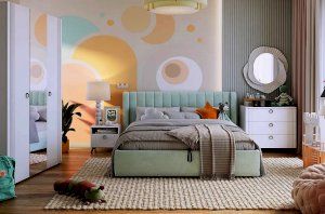 Комплектация: Кровать, прикроватная тумба, трехстворчатый шкаф с зеркалом, комод