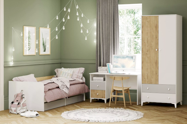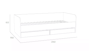 Односпальная кровать  подходит для детской мальчиков и девочек в современном, скандинавском и стиле лофт. В кровати предусмотрены ящики для хранения постельного белья или игрушек. Натуральный материал ламелей не вызывает аллергии и безопасен для здоровья. Изогнутая форма ламелей придает основанию спального места большую прочность и дополняет ортопедические свойства матраса.