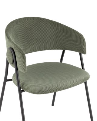 Стильный кухонный стул с оригинальной формой спинки. В качестве обивки используется мягкий велюр, износостойкий, гигроскопичный материал с приятной на ощупь бархатистой фактурой. Металлический каркас в черном цвете огибает спинку и выступает аккуратным акцентом модели. Широкое сиденье обеспечивает удобную посадку и уют.