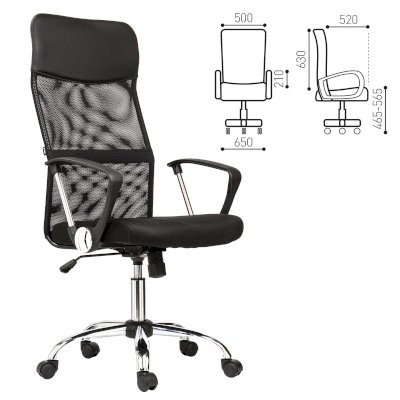 Спинка кресла выполнена из прочного сетчатого акрила. Материал обладает высокой воздухопроницаемостью, легко чистится, способен подстраиваться под физиологические изгибы спины, при этом сохраняет форму и не растягивается. Верхняя, наиболее подверженная износу, часть спинки изготовлена из экокожи. Помимо этого в области поясницы предусмотрена специальная вставка из эластичной ленты для дополнительной поддержки спины.