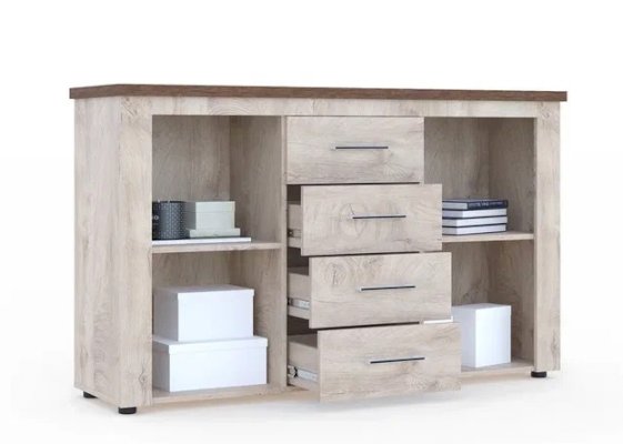 Теплые древесные цвета с фактурой и рисунком натурального дерева, комода Мэдисон, подарят Вашему дому ощущение тепла и уюта. Вместительные закрытые полки и ящики на телескопических направляющих, помогут распределить вещи в соответствии с Вашими желаниями и предпочтениями. На верхнюю крышку комода, которая сделана из утолщенной плиты с мягкими безопасными краями, можно поставить фото, цветы, декор. Выполнен из экологически безопасных материалов.