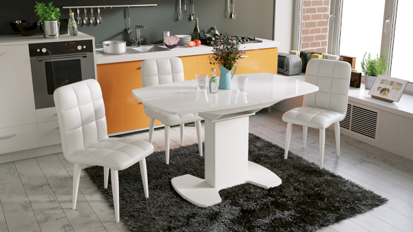 Столешница данной модели, выполненная из ЛДСП 16 мм и закаленного стекла 4 мм, имеет необычную форму с закругленными углами, именно поэтому Портофино сможет придать интерьеру мягкость и плавность. Стекло белое глянцевое воплощает роскошь современных модных тенденций, а серое и бежевое матовое – благородство и безупречность. Подстолье и основание стола выполнены из МДФ в пленке ПВХ. Они, несомненно, привлекут внимание поклонников стиля «модерн».