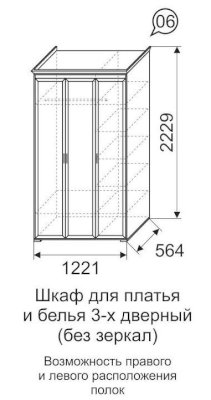 Карниз приобретается отдельно (обратите внимание, что при покупке карниза высота шкафа увеличится на 43мм)