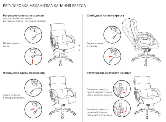 Тип механизма кресла: "топ-ган" качание с регулировкой под вес и фиксацией в 1 положении