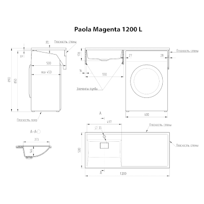 Раковина Magenta 1200 под стиральную машину (Paola)