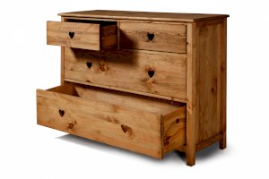 Тумба KR17 - два больших выдвижных ящика и два ящика меньшего размера на деревянных полозьях.
