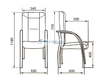 Кресло с высокой спинкой на деревянном каркасе на 4-х ножках.
