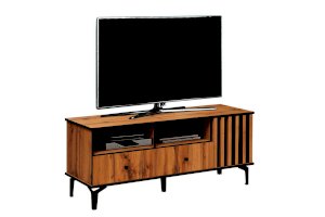 Даже если у вас нет ТВ, то тумба под ТВ должна быть обязательно! Ведь на нее можно поставить все, что захотите - большую плазменную панель, стереосистему или и то, и другое – габариты тумбы это позволяют! В дизайне поддерживается концепция асимметричности. Два отсека-близнеца: открытая полка и под ней выдвижной ящик плюс просторный ящик за распашной дверцей.