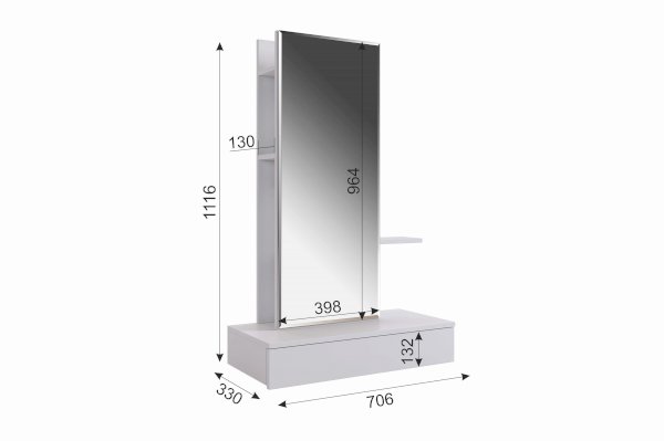 Способы установки полок смотреть в паспорте при сборке. Рядом с полками на задней панели предусмотрены стильный крючок для украшений или фена.