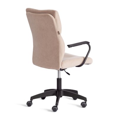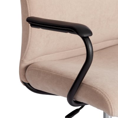 5-лучевая полиамидная крестовина диаметром 650 мм устойчива и надежна. Ролики с полиуретановым нанесением обеспечивают бесшумное и плавное передвижение, подходят для паркета и ламината. Диаметр штока – 11 мм. Газлифт 3 класса с ходом 100 мм позволяет легко регулировать высоту сиденья для достижения удобного положения. Фиксированные подлокотники из металлической трубы с порошковым покрытием и декоративной пластиковый накладкой обеспечивают дополнительный комфорт, помогают снизить нагрузку с поясницы и спины. Сиденье из фанеры 10 мм и спинка с каркасом из металла с наполнителем из ППУ плотностью не менее 22 кг/м³ обеспечивают оптимальную поддержку при длительном времяпрепровождении за компьютером. Обивка из флока плотностью 320 г/м² с водоотталкивающей пропиткой не только приятна на ощупь, но и устойчива к износу, что делает эту модель идеальной для частого использования.