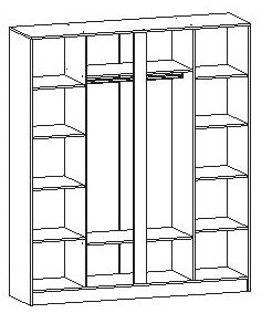 • Наполнение: 2 отделения со штангой + 2 отделения с полками
