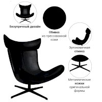 Чаша кресла обита прессованной кожей и установлена на устойчивой «четырехпалой ножке»
