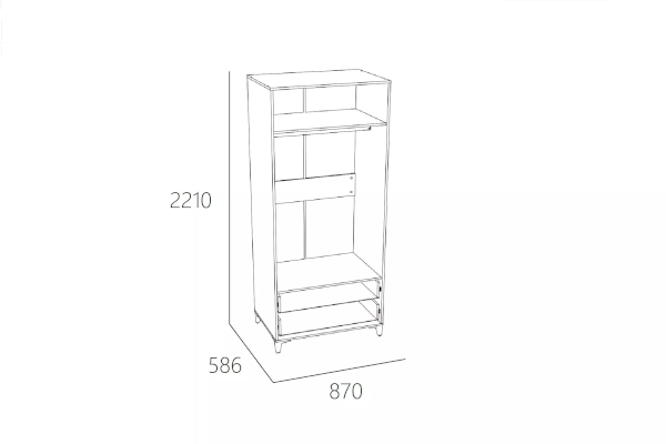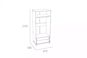 Шкаф «Морти» на высоких изящных ножках предназначен для тех, кто любит простоту и минимализм. Шкаф обладает модным сочетанием материалов и, благодаря характерным декоративным особенностям, понравится всем поклонникам скандинавского стиля. Отделение с полкой и штангой предназначено для хранения одежды на вешалках, головных уборов, коробок с аксессуарами. Два выдвижных ящика предназначены для сложенной одежды, аксессуаров, личных вещей.