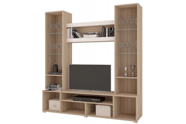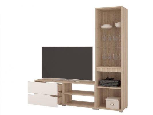 Отсутствие ручек является особенностью серии "Анталия", что придает современный и лаконичный внешний вид. В состав гостиной "Анталия" входит вместительный шкаф, а добавив комод можно получить еще больше места для хранения.