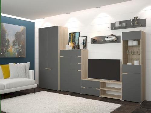 Модульная гостиная Анталия Сонома/Графит софт (Горизонт)