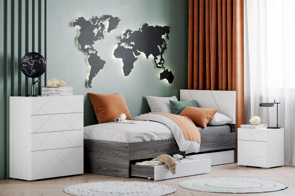 Детская кровать Summit НМ 041.53 станет настоящим островком комфорта для отдыха Вашего ребенка. Благодаря приятной на ощупь обивке мягкого изголовья читать перед сном или смотреть фильм будет ещё удобнее. Ортопедическое основание кровати станет огромным преимуществом. Натуральный материал ламелей не вызывает аллергии и безопасен для здоровья. Кровать также оснащена бельевым ящиком, который позволяет разгрузить платяной шкаф в комнате.