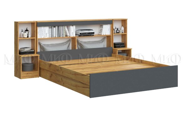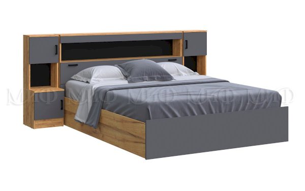 Кровать 1,6м с надстройкой с тумбами
