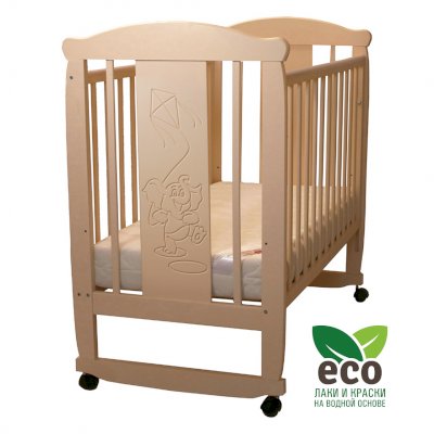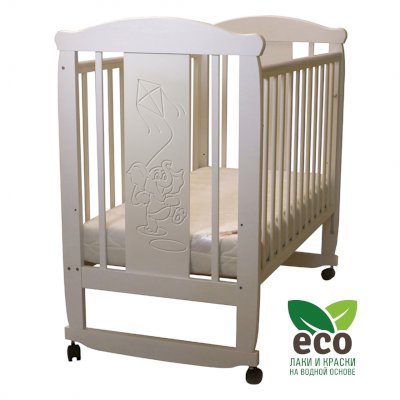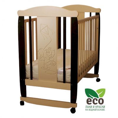 Кроватка "Соня 02" имеет механизм качания колесо-качалка. Колеса оснащены стопорами.