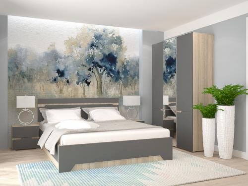 Модульная спальня Анталия Сонома/Графит софт (Горизонт)