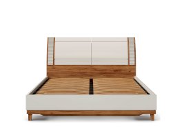• Кровать с жестким изножьем и изголовьем, выполненных из гнуто-клеенных панелей, покрытых пленкой ПВХ, выполняющих роль дверей, закрывающих 2 ниши для хранения