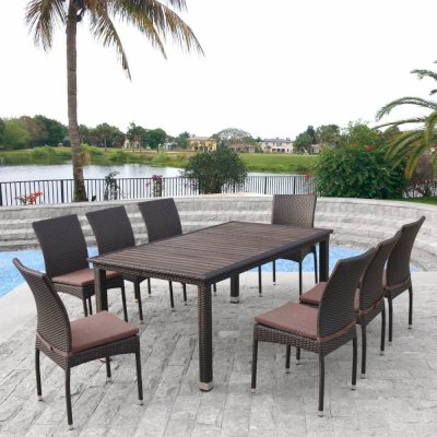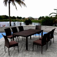 В составе комплекта: стол - столешница декинг и 8 стульев с подушками. Высококачественная лоза из полиротанга коричневого цвета стойкая к любым атмосферным явлениям. Крепкий стальной каркас с полимерным антивандальным покрытием и отличным качеством сварки. Изделие сплетено вручную нашими мастерами под жестким контролем качества на каждом этапе производства. Лоза максимально приближена по рельефу и текстуре к естественному материалу. Идеально подходит для использования на улице и внутри помещения в любую погоду. Не боится воды, солнца и минусовой температуры.