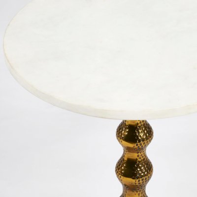 Красивый кофейный столик Secret De Maison BOLLY из коллекции SILVER отлично впишется практически в любой интерьер, поможет сделать его завершенным, более комфортным и уютным. Устойчивое основание столика выполнено из алюминиевого сплава с отделкой под латунь и чеканкой ручной работы, оно играет светом, притягивает блеском, но в то же время выглядит просто и без излишеств. Уникальная столешница из натурального мрамора придает особенную красоту изделию. Благодаря компактным размерам и небольшому весу, столик мобилен. Его можно поставить в любой части комнаты и переместить при необходимости, использовать как по прямому назначению, так и в качестве дополнительной сервировочной поверхности. Модель прочна, надежна, не требует специального ухода и будет долгое время радовать вас своим первоначальным видом. Поставляется в собранном виде.