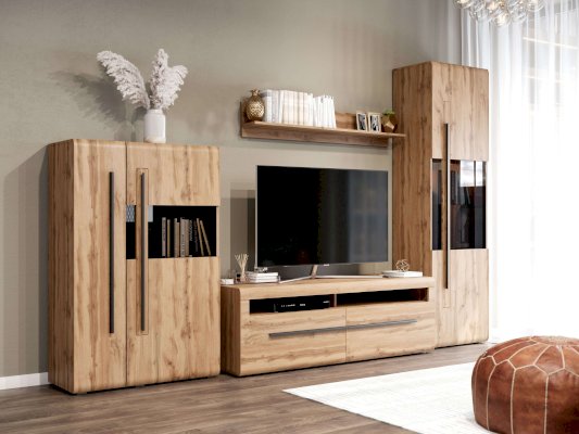 Тумба под ТВ "Ницца" выполнена в популярных цветах Дуб Вотан и Дуб Винтерберг. Природные оттенки с рустикальной древесной текстурой принесут вашему интерьеру уютное тепло и комфорт.