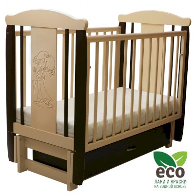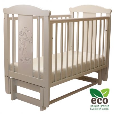 Кроватка "Соня 05" имеет механизм качания продольный маятник. Механизм качания фиксируется. Возможен вариант кровати с ящиком.