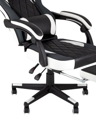 Кресло укомплектовано ортопедическими подушками для поддержки шеи и пояса, каждая из которых может быть настроена так, как вам захочется. Механизм регулировки угла наклона спинки от 90 до 180 градусов и выдвижная подставка для ног под сиденьем позволяют достичь максимального комфорта.