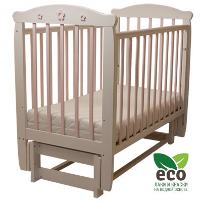 Кроватка "Соня 05" имеет механизм качания продольный маятник. Механизм качания фиксируется. Возможен вариант кровати с ящиком.