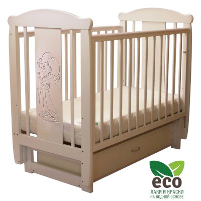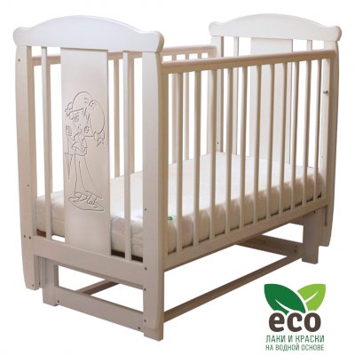 Кроватка декорирована фрезерным рисунком "Девочка". Уникальные фрезерные рисунки размером от 50 см на обеих спинках.