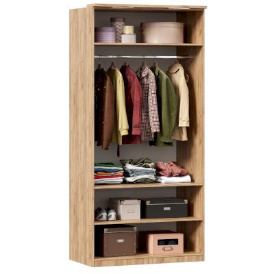• За 2 распашными фасадами 3 полки и штанга для одежды. Высота ниши со штангой 1250 мм