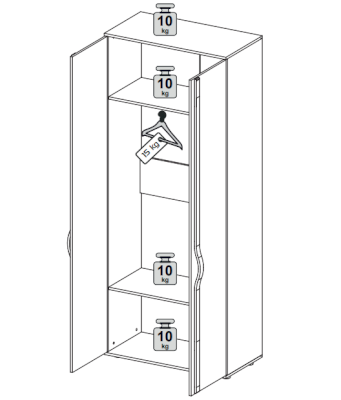 • Максимальная нагрузка на полку 10 кг