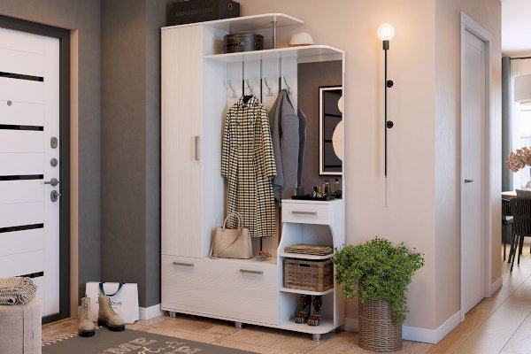 Добавьте солнечного настроения с прихожей «Барселона-1»! В ней есть всё необходимое: шкаф с полками для вещей, крючки для одежды, выдвижной ящик и открытые полки для нужных мелочей, нижний шкаф для обуви, полка для головных уборов и зеркало.