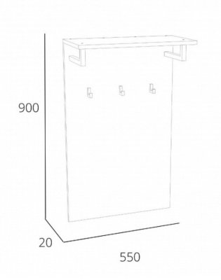 Вешалка представлена в двух цветах – Дуб Гранж Песочный и Дуб Самдал. Вешалка оснащена тремя крючками квадратной формы и навесной полкой для удобного размещения верхней одежды и головных уборов.