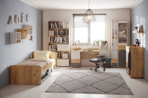 Цвет: Дуб золотистый/Графит/Белый