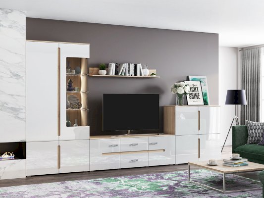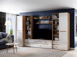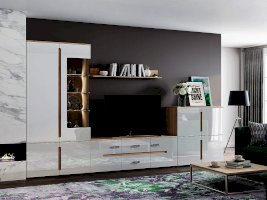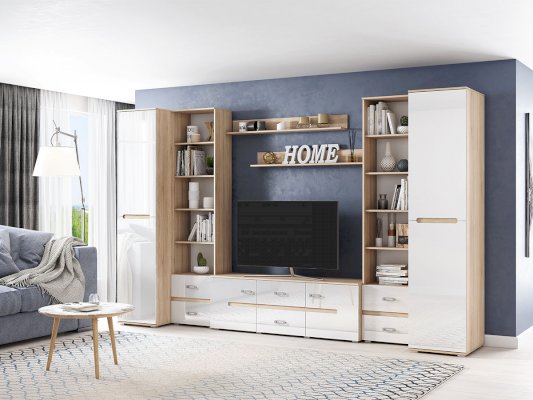 Модульная гостиная «Ким» выполнена в одном стиле и цветовой гамме со спальней «Ким», что позволяет подобрать мебель для квартиры любой площади. Отличается белыми глянцевыми фасадами. В нашем интернет-магазине вы можете собрать гостиную из модулей на свой вкус.