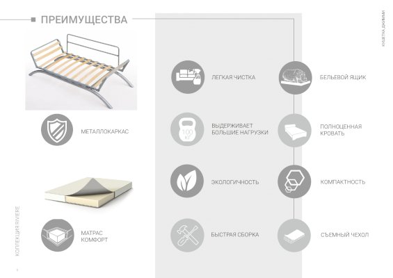 • основание матраса – ортопедические латы увеличенной прочности. Максимальная нагрузка на спальное место – 100 кг