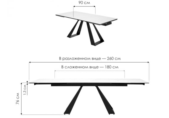 | Длина разложенного столика, мм | 2600 |