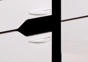 • Глянцевые ручки в цвет фасадов, декоративные торцевые накладки и дизайнерский прием стыковки модулей делают модель оригинальной и стильной