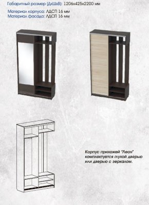 Модульная прихожая Леон (МБГ) - за 27 139 руб. в Сергиевом Посаде. Купите на сайте sergiev-posad.onlinemarketmebeli.ru или по телефону 8(800)505-30-63 уже сегодня! Уточнить наличие, комплектацию, актуальную цену можно бесплатно у менеджера ежедневно. Закажите Модульная прихожая Леон (МБГ) до конца акции! Доступна покупка в кредит, рассрочку. Доставим со склада или на заказ.