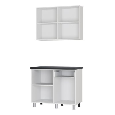 Кухонный гарнитур Ева шириной 1 м - лаконичное оригинальное решение для вашей кухни! Гарнитур состоит из модулей: верх 10В1 (ширина 1000 мм, высота 720 мм, глубина 310 мм), низ 10Р2 (ширина 1000 мм, высота 820 мм, глубина 500 мм. Высота нижнего модуля указаны с опорой.