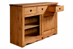 Тумба KR100 - две раздвижные дверки, сплошная полка. 3 выдвижных ящика на деревянных полозьях.