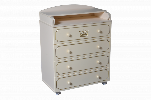 Пеленальный комод Nikol 80/4 отличается привлекательным дизайном с использованием тематических детских принтов. В конструкции изделия предусмотрены 4 маленьких передвижных колеса, несколько вместительных ящичков на шариковых направляющих и откидывающаяся пеленальная столешница. Детский пеленальный комод, декорированный красочным рисунком, вмещает в себя постельные принадлежности, средства гигиены, распашонки, подгузники, игрушки, ползунки и другие личные вещи ребенка. Гладкая столешница идеально подходит для пеленания ребенка, а колесики позволяют быстро перемещать комод.